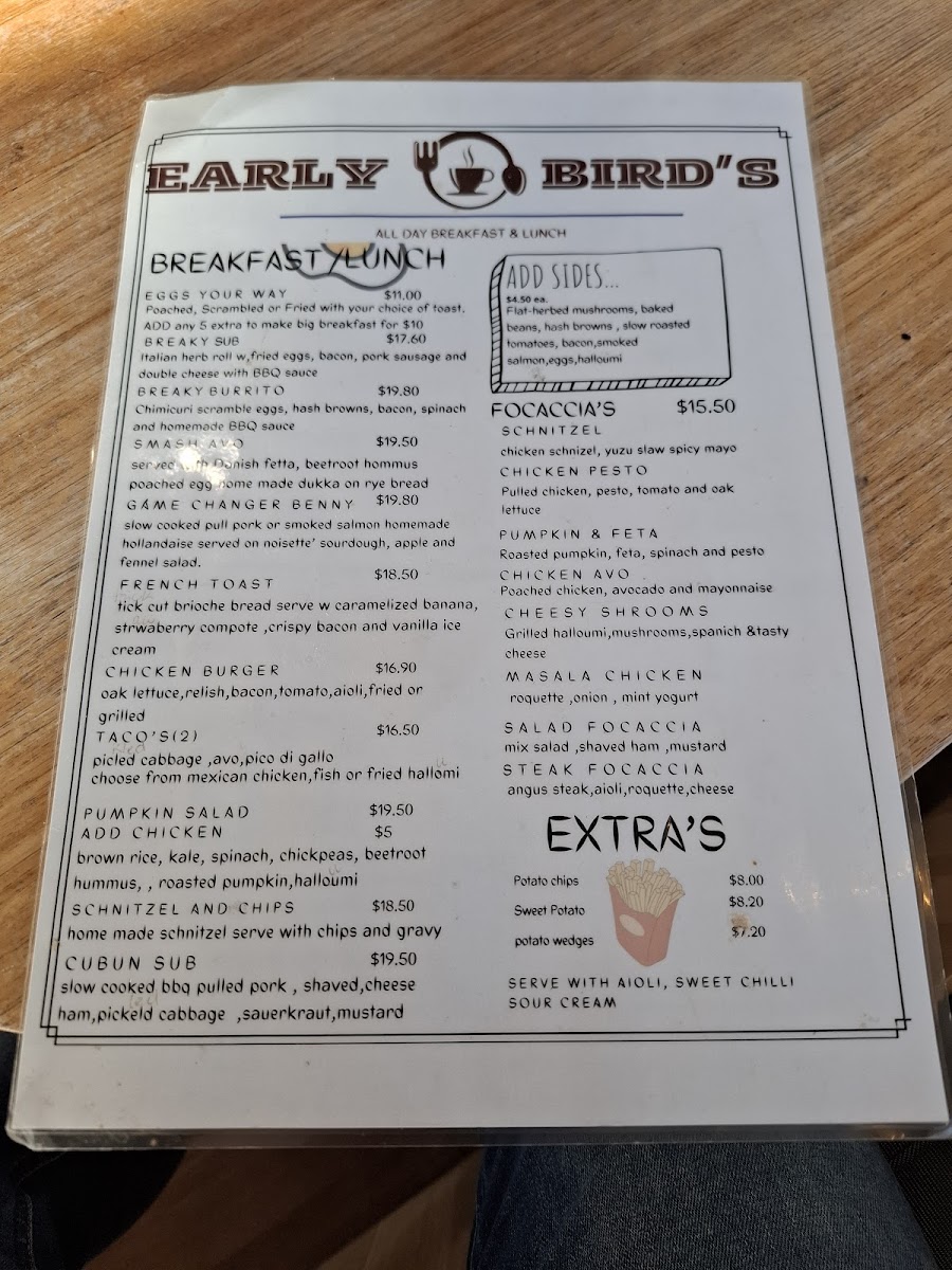 However, one noticeable point is that Early Birds Cafe opens at 8:00 AM—something to keep in mind if you're an early riser. But once you do get in, the experience is worth the wait!